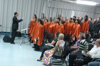 Sob a regência do maestro Ricardo Podmowski, o Coral da I Igreja Batista, que tem 30 vozes, apresentou canções religiosas e de tradição natalina. Nair da Silva Ferreira, que preside o Coral, e Júlio Jerônimo, que preside a igreja em Apucarana, afirmaram que o Coral existe desde 1948, data da fundação da Igreja Batista. O maestro Podmowski informou que a participação no Coral é restrita a membros da Igreja e que os ensaios acontecem duas vezes por semana. Neste final de ano, o Coral também fez apresentações em outras entidades, como o Asilo e o Pronto Atendimento Municipal (PAM).