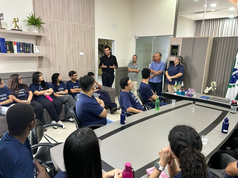 Eles foram recebidos pelo presidente da Câmara, Danylo Acioli (MDB), pela vereadora Eliana Rocha (Solidariedade), e pelos vereadores Luiz Vilas Boas (PDT), Guilherme Livoti (União Brasil) e Adan Lenharo (DC). Acompanhados pelos professores Silvano França e Leonardo Colombo, os estudantes puderam conhecer as dependências da Câmara, incluindo o plenário, os gabinetes dos vereadores e outros setores administrativos.